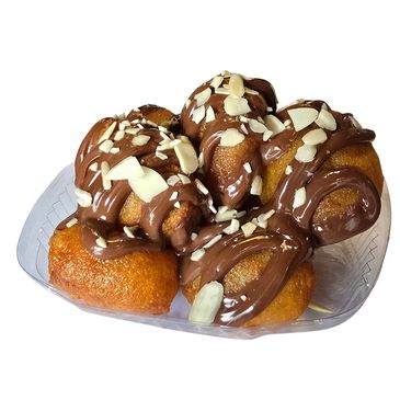 8 Loukoumades, traditional bite-sized Greek donuts that are deep-fried until golden and crispy on the outside, yet airy on the inside. Drizzled with Nutella, and sprinkled with almonds.